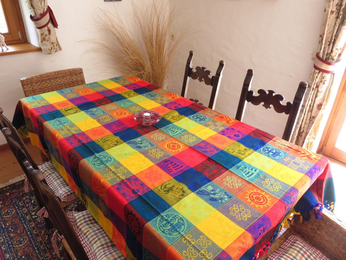 Wir lieben die Mantėles, die für Mexiko so typischen Tischdecken mit Karomuster, weil sie so farbenfroh und noch dazu mit