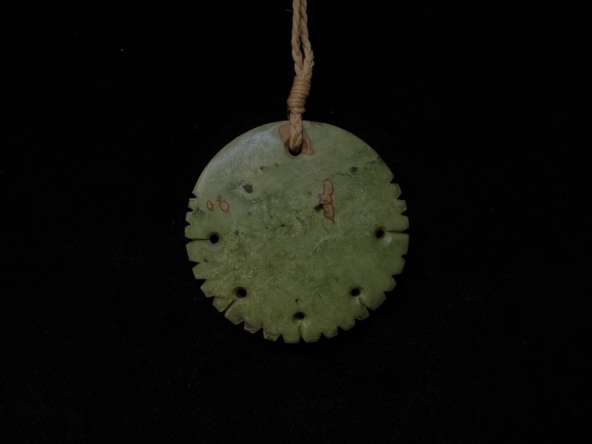 Dieses schöne Unikat stammt aus der Hand eines uns gut bekannten Meisters der Maori. Es ist perfekt gearbeitet und Besticht zudem durch die gesprenkelte Kokopu-Jade.