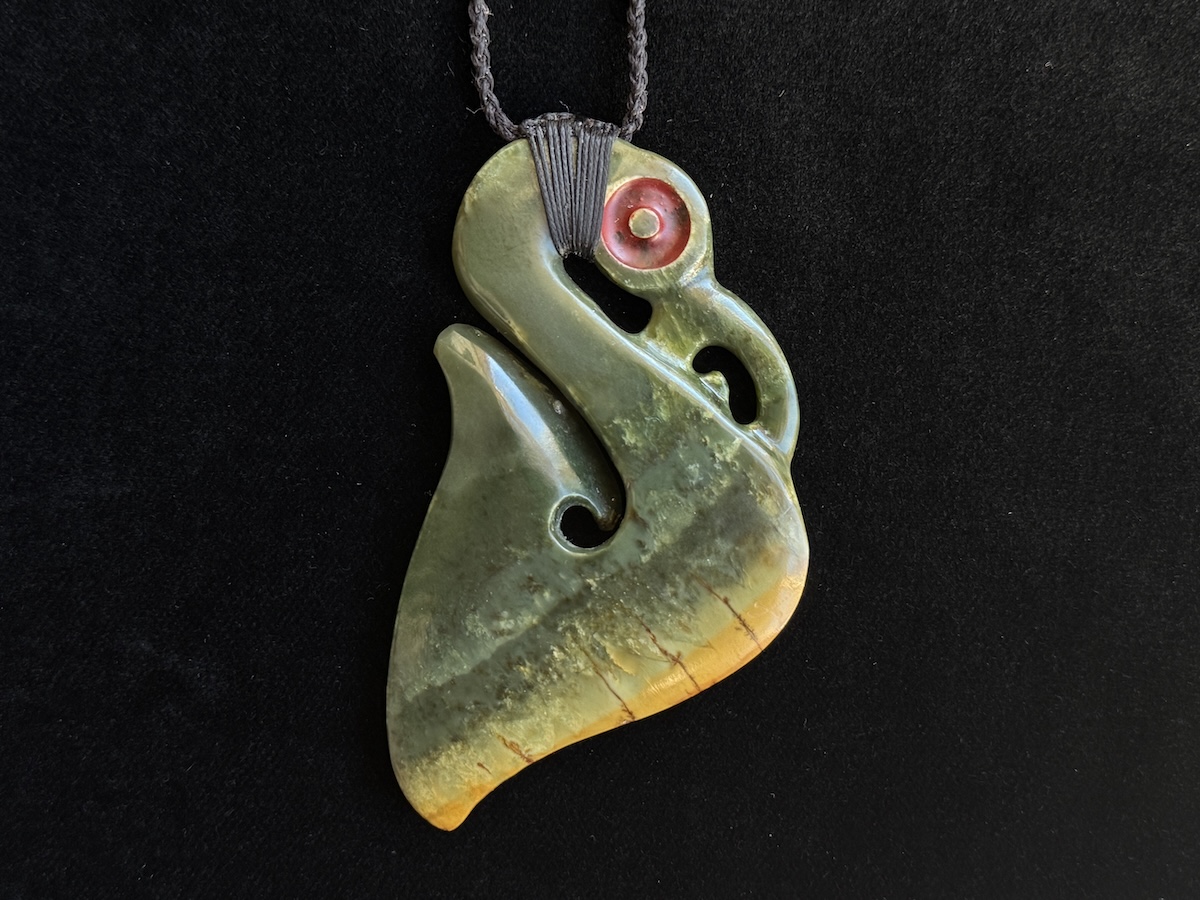 Wenn das nicht ein echter Schatz (Maori:”Taonga”) ist. Dieses beeindruckende, klassiche Manaia stammt aus der Hand eines uns gut bekannten Künstler der Maori. Es besticht durch seine Größe. die perfekten Proportionen und die grüne-gelbe Blumenjade in Edelsteinqualität!