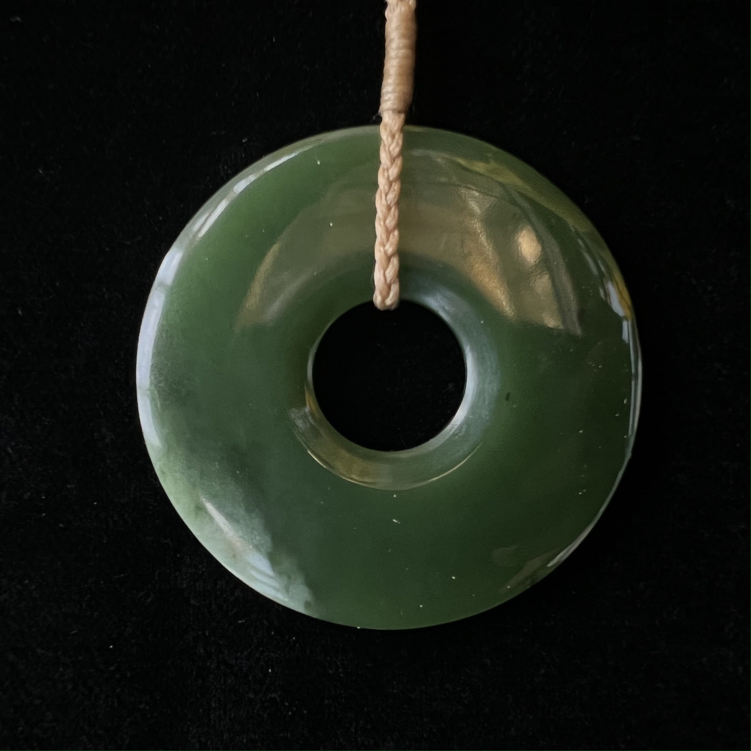 Kawakawa ist so etwas wie die klassische Neuseeland-Jade in ihrer kräftig-vitalen grünen Farbe. Es gibt viele Qualitätsunterschiede. Die Jade dieses Schmuckstückes ist sehr homogen und durchscheinend, sie hat Edelsteinqualität.
