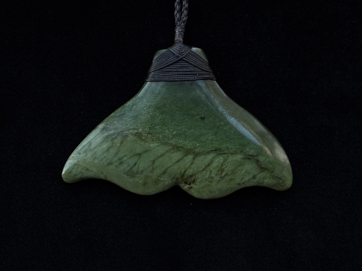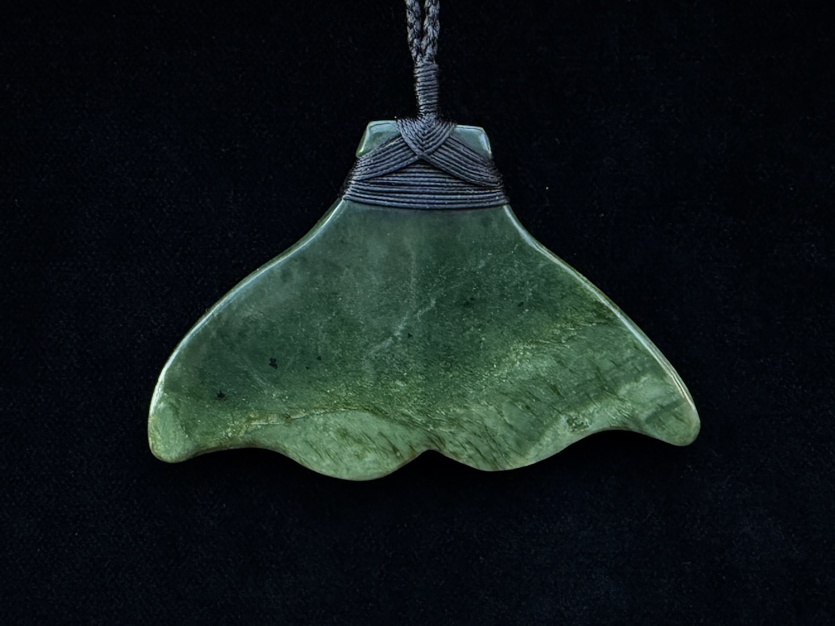 Diese wundervolle Walflosse stammt aus den Händen eines uns gut bekannten Meisters der Maori. Es besticht durch seine Größe und die perfekten Proportionen und die klassische Kawakawa-Jade in Edelsteinqualität.