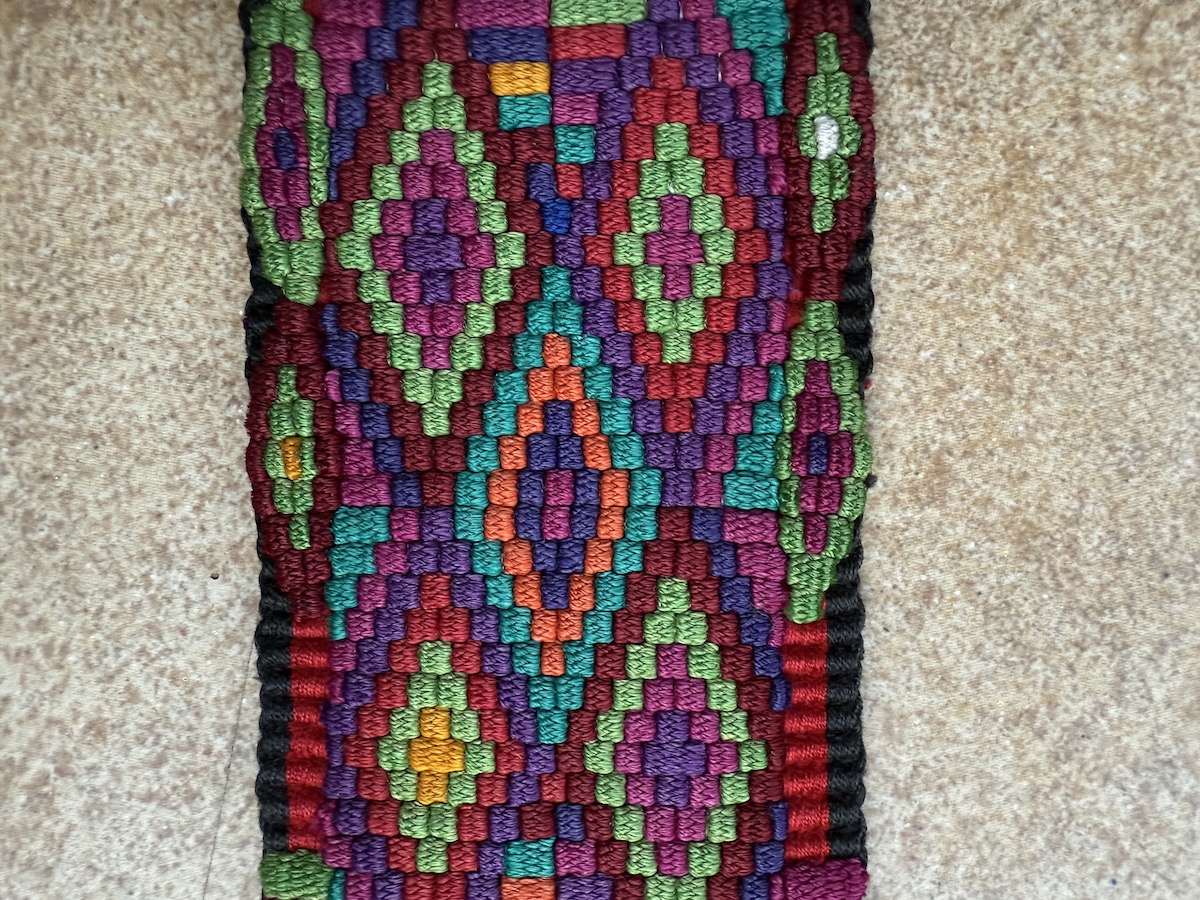Schöne Fajas wie diese werden heute nur noch selten hergestellt. Vor allem die Poquomam-Fajas, die wir anbieten, sind in der Regel gebraucht aus zweiter Hand.