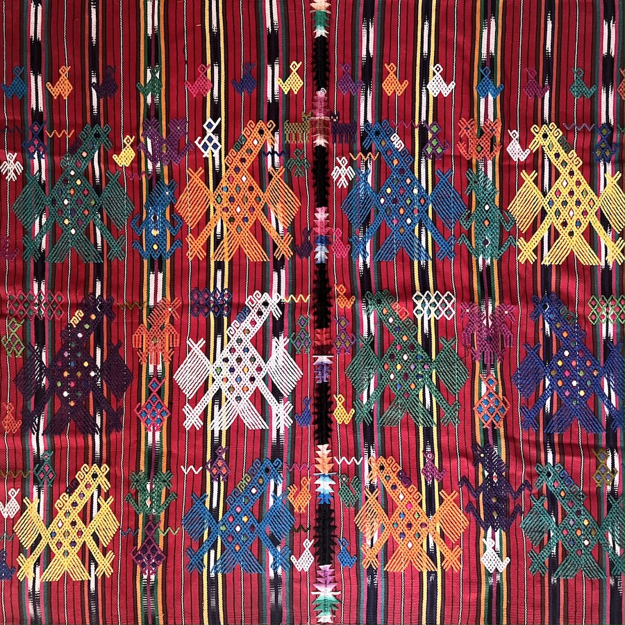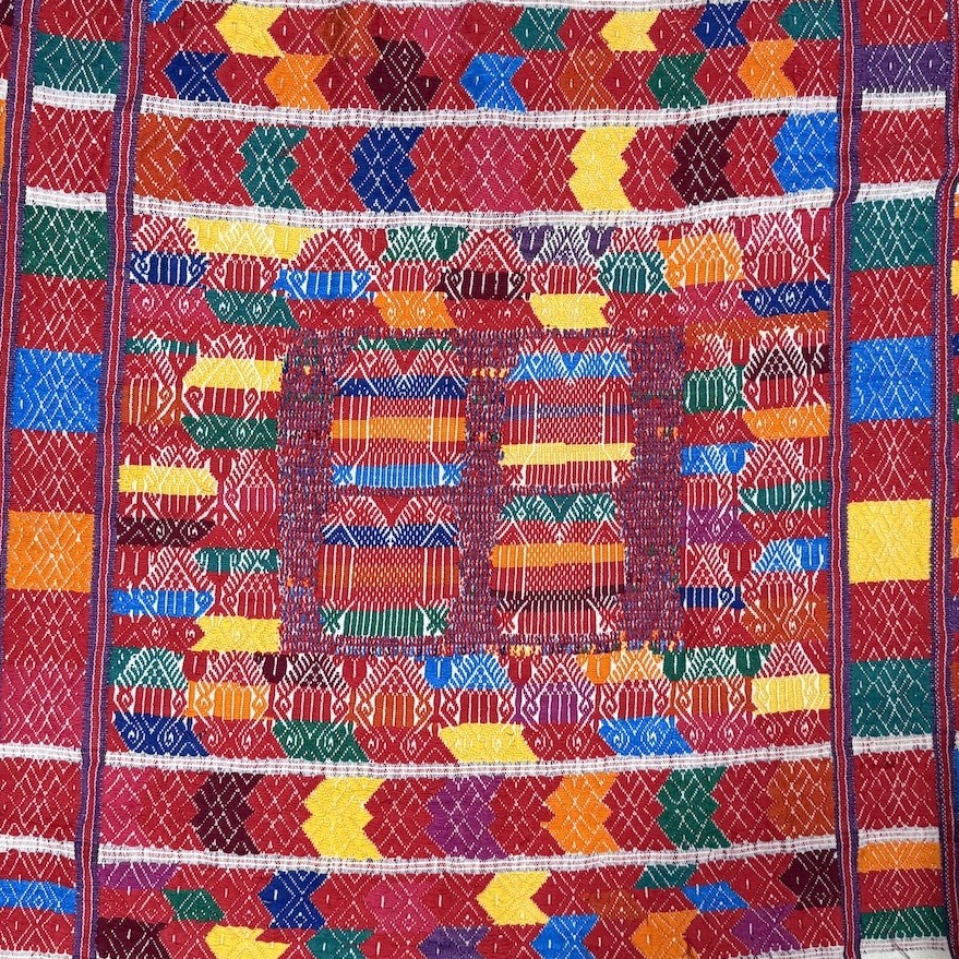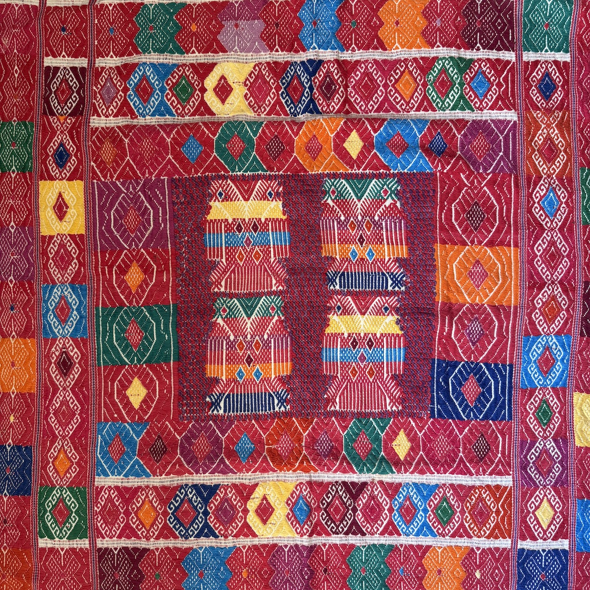 Die folgenden Tzutes wurden alle von mir persönlich in Guatemala gekauft und sind wahre Raritäten und Kostbarkeiten, da sie in dieser Form heute nicht mehr hergestellt werden und nur sehr schwer zu finden sind. Sie sind jeweils zumindest 40 Jahre alt und stammen entweder vom Maya-Stamm der Poquomames, mit dem ich selbst auch eine spezielle Verbindung bekommen habe, oder aus Chichicastenango, einem sehr starken Zentrum der Mayatradition.